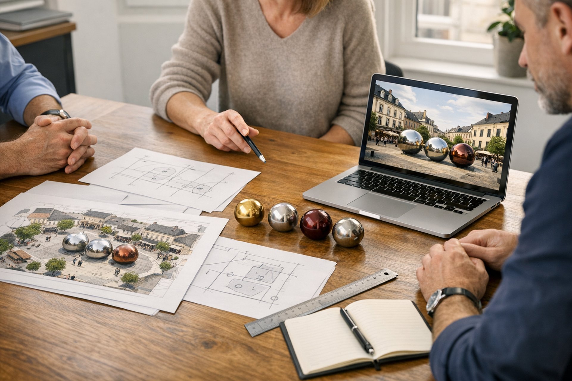 Gigantia conçoit et installe des sphères décoratives monumentales pour villes, mairies et événements publics.