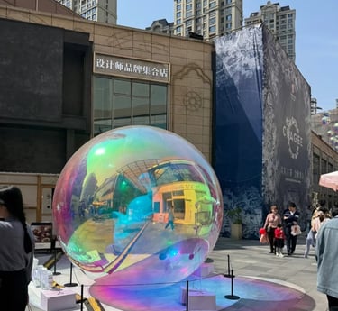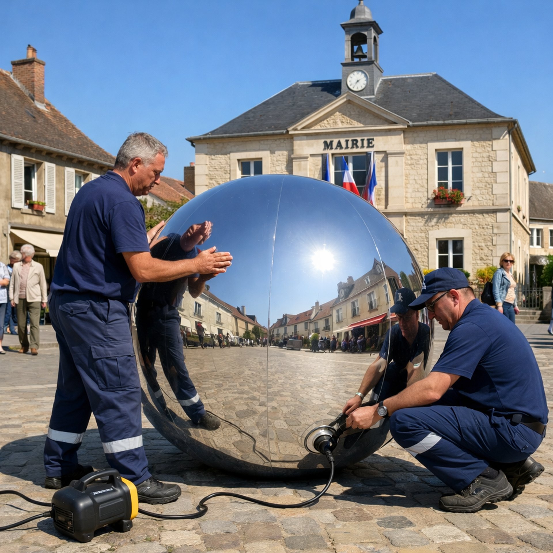 Gigantia conçoit et installe des sphères décoratives monumentales pour villes, mairies et événements publics.